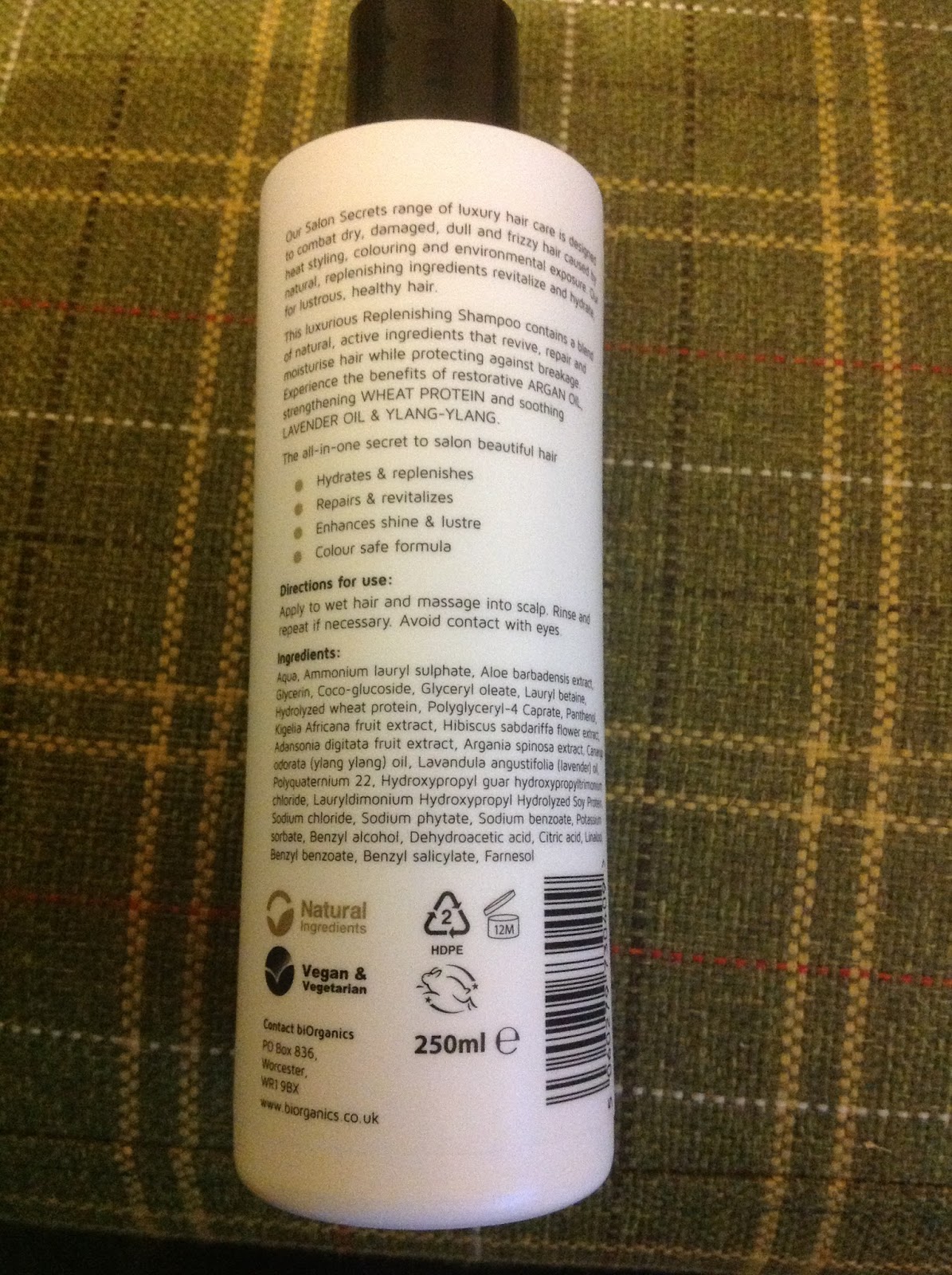 The Replenishing shampoo costs £11.50 for a 250ml bottle or £17.50 for a 500ml bottle. It’s aimed at dry or damaged hair and contains nutritional Argan oil, strengthening Wheat protein and smoothing Lavender oil and Ylang Ylang.