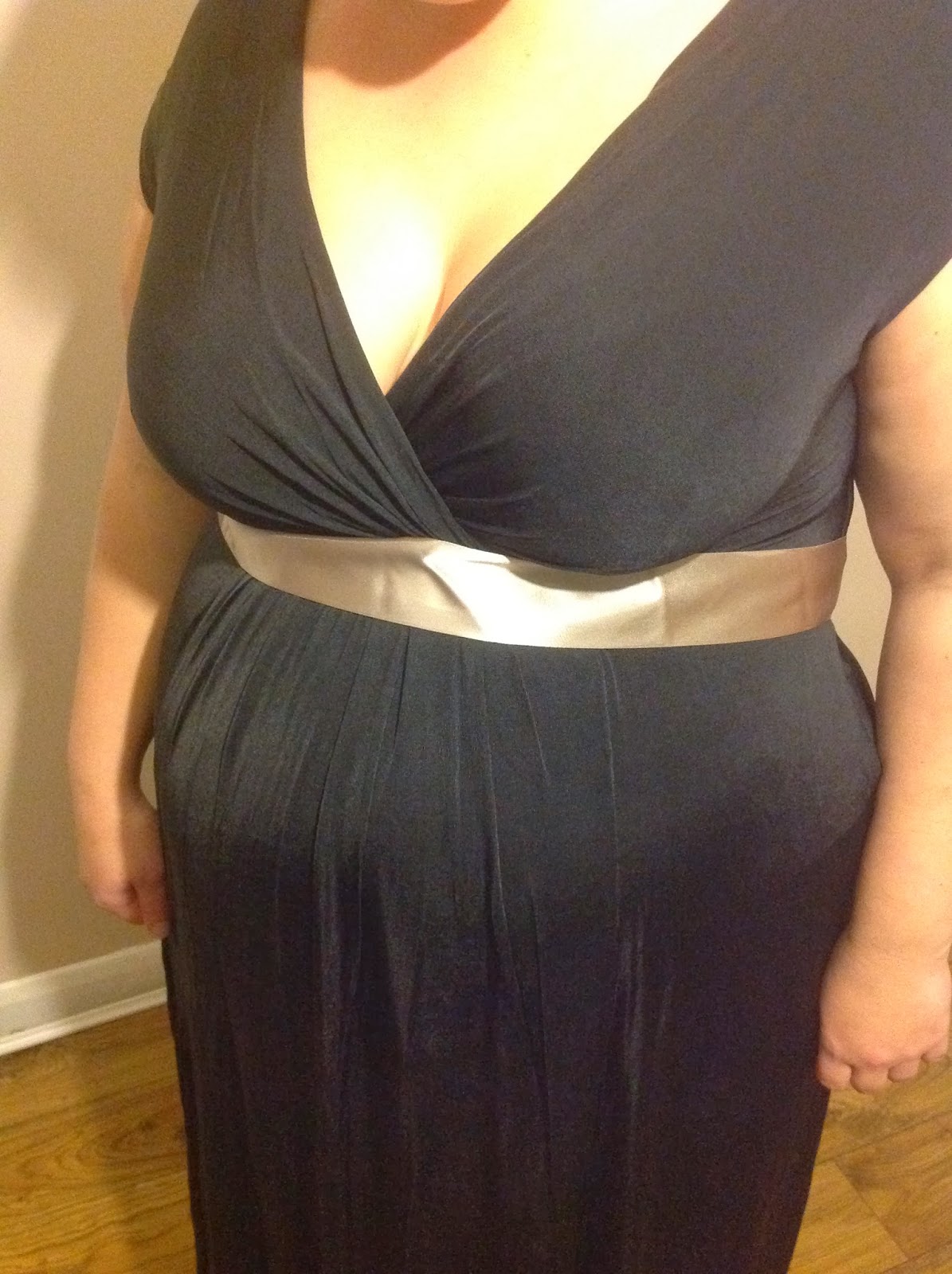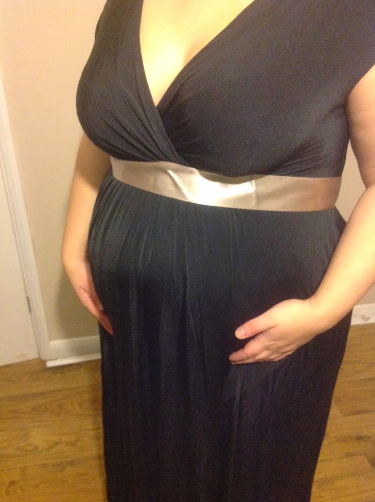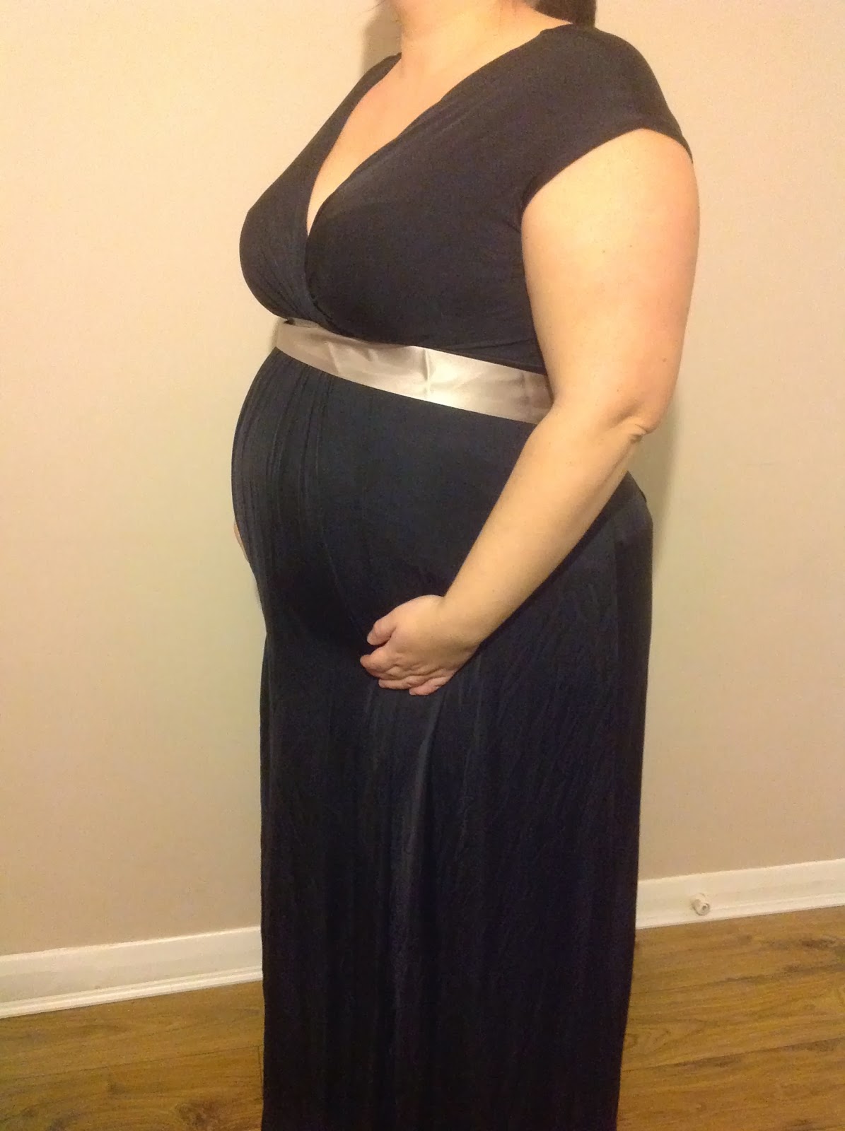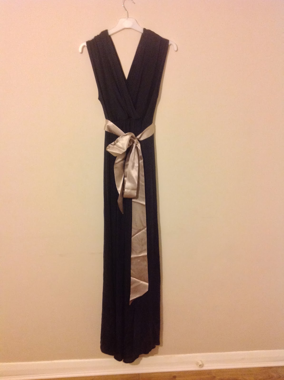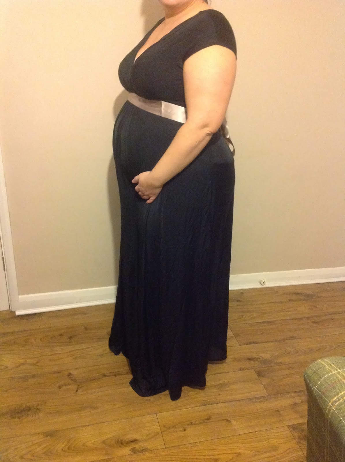 The dress is extremely flattering and elegant. It comes with a mik coloured sash which can be added around the waist to completely change the look of the dress. The dress is made from 95% acetate and 5% elastane, so has a nice stretch, allowing you to wear it, even with a growing bump. It feels comfortable and not at all tight over my stomach which was really nice, and because its floor length I can get away with some shoes that are a bit more comfortable and lower than I would usually wear with such a pretty dress.