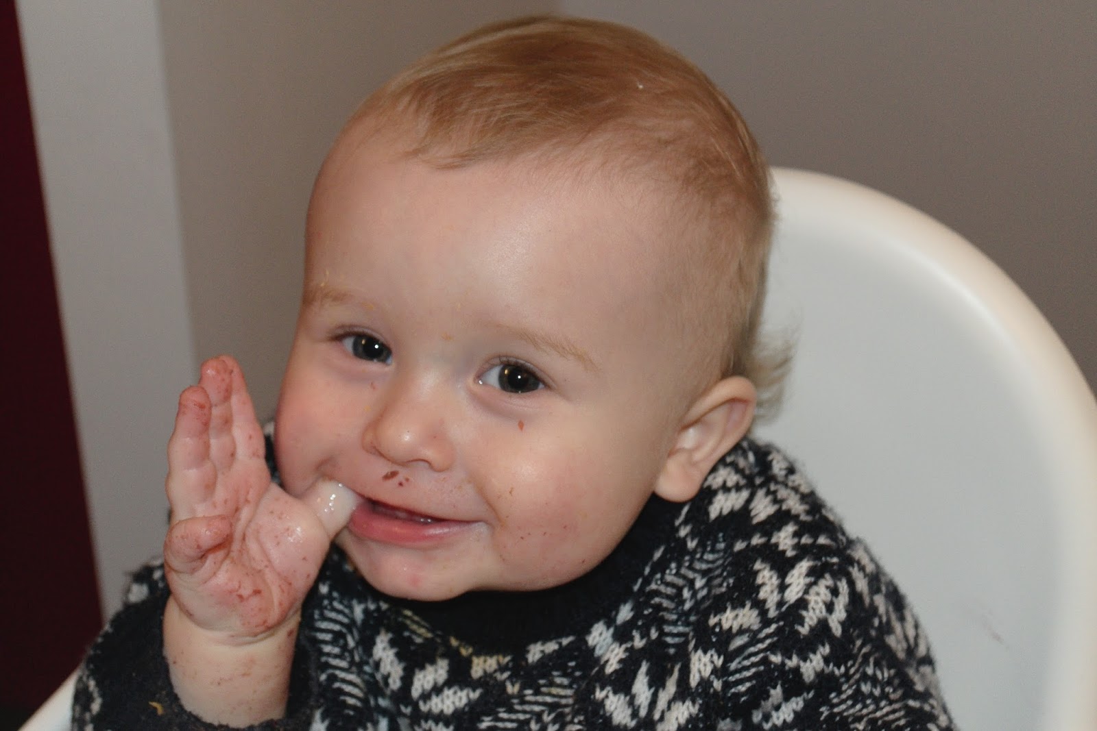 His feeding is great. He eats pretty much anything we give him. His favourites are still ham, cucumber and pasta with a tomato sauce.