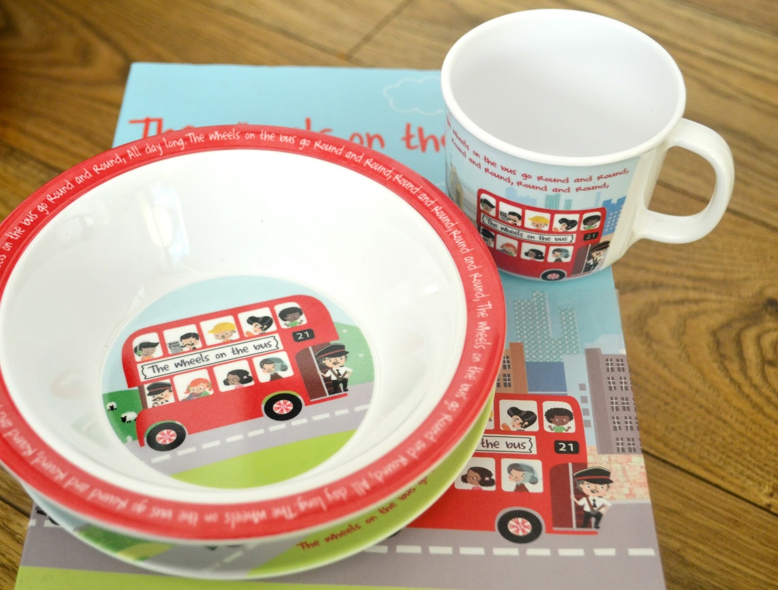The set costs £18 which I don’t think it too bad considering the quality and pretty designs. It’s suitable for both boys and girls. EVERY time we use the tablewear set we have to sing the Wheels on the Bus over and over and over, the little man loves it!