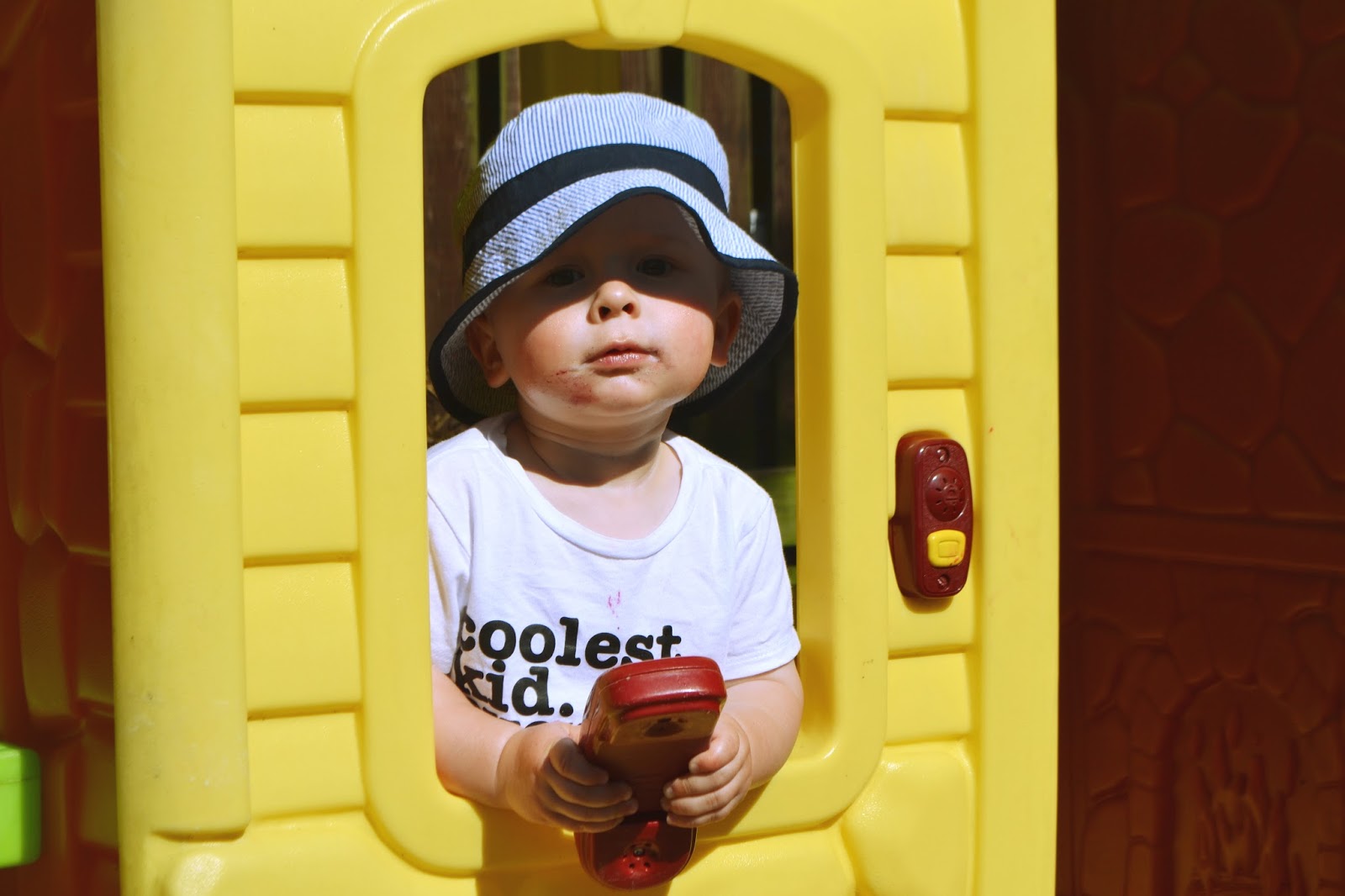 Our garden is starting to look more like a garden so he’s spent quite a bit of time in their too, he’s got lots of garden toys but I think his Little Tikes house is his favourite.
