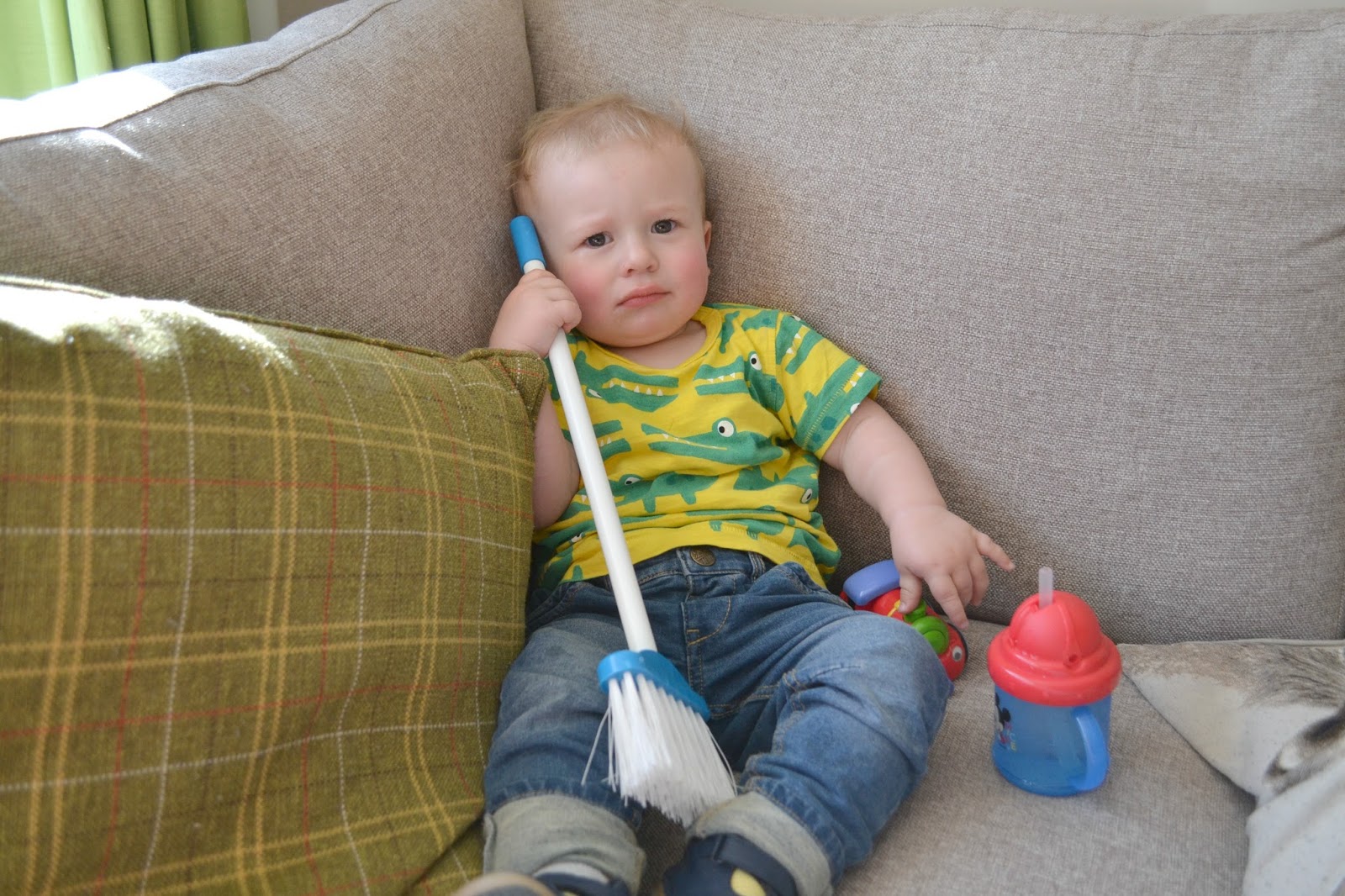 He’s got a little cleaning set with a brush and pan set, he’s started copying me and sweeping up the kitchen floor, it’s so cute to watch but I wish he could actually clean – that would make Mammy very happy! He likes to help put things in the bin, though I dread to think what’s been thrown out without my knowledge over the last few weeks.