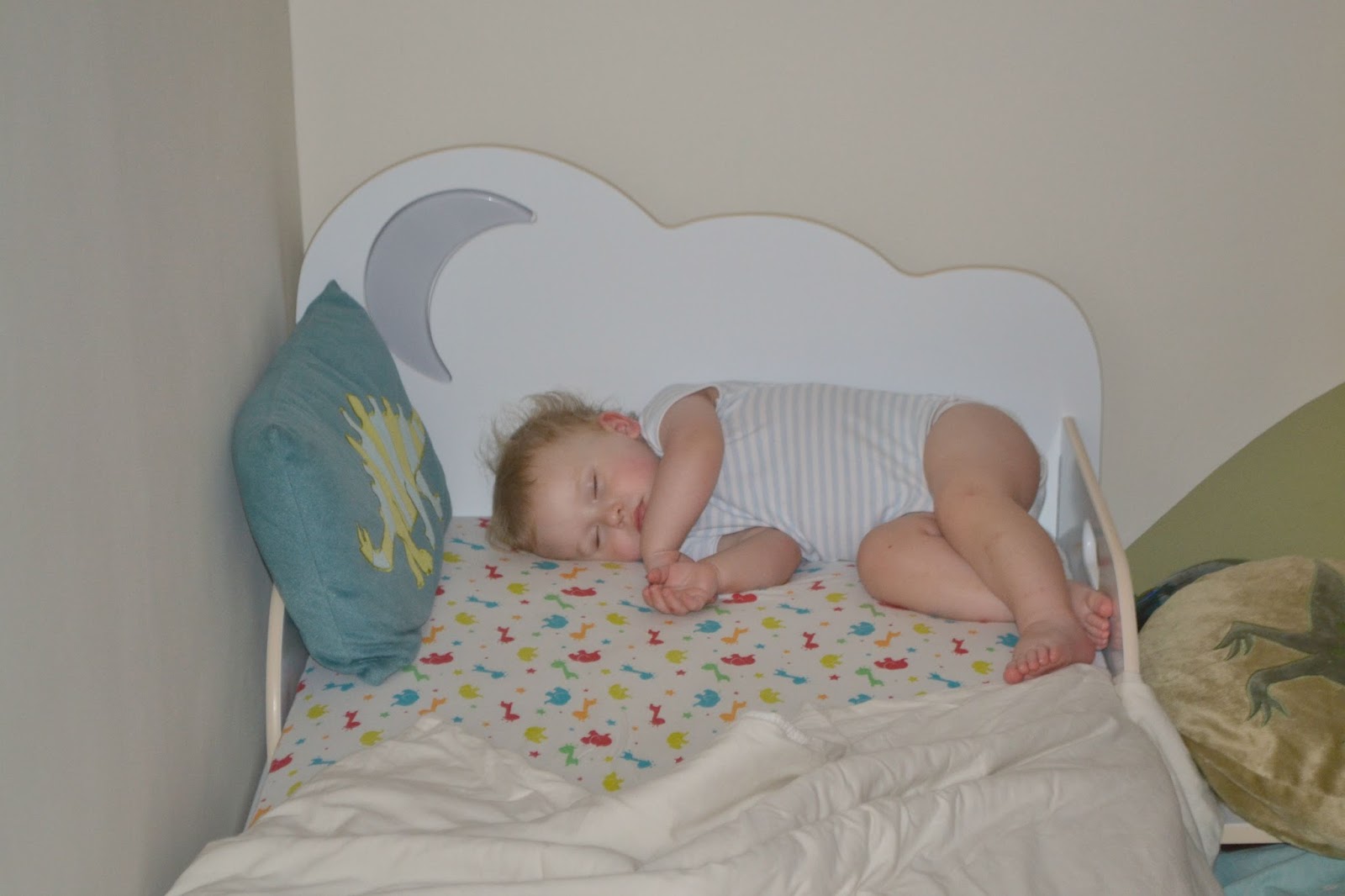 He’s gone into his big boys bed now. He’s been in for a week or two and is doing really well. He seems much more settled than he ever did in his cot. He still likes to come in for a snuggle with us on a morning but he’s mainly sleeping through in his toddler bed.