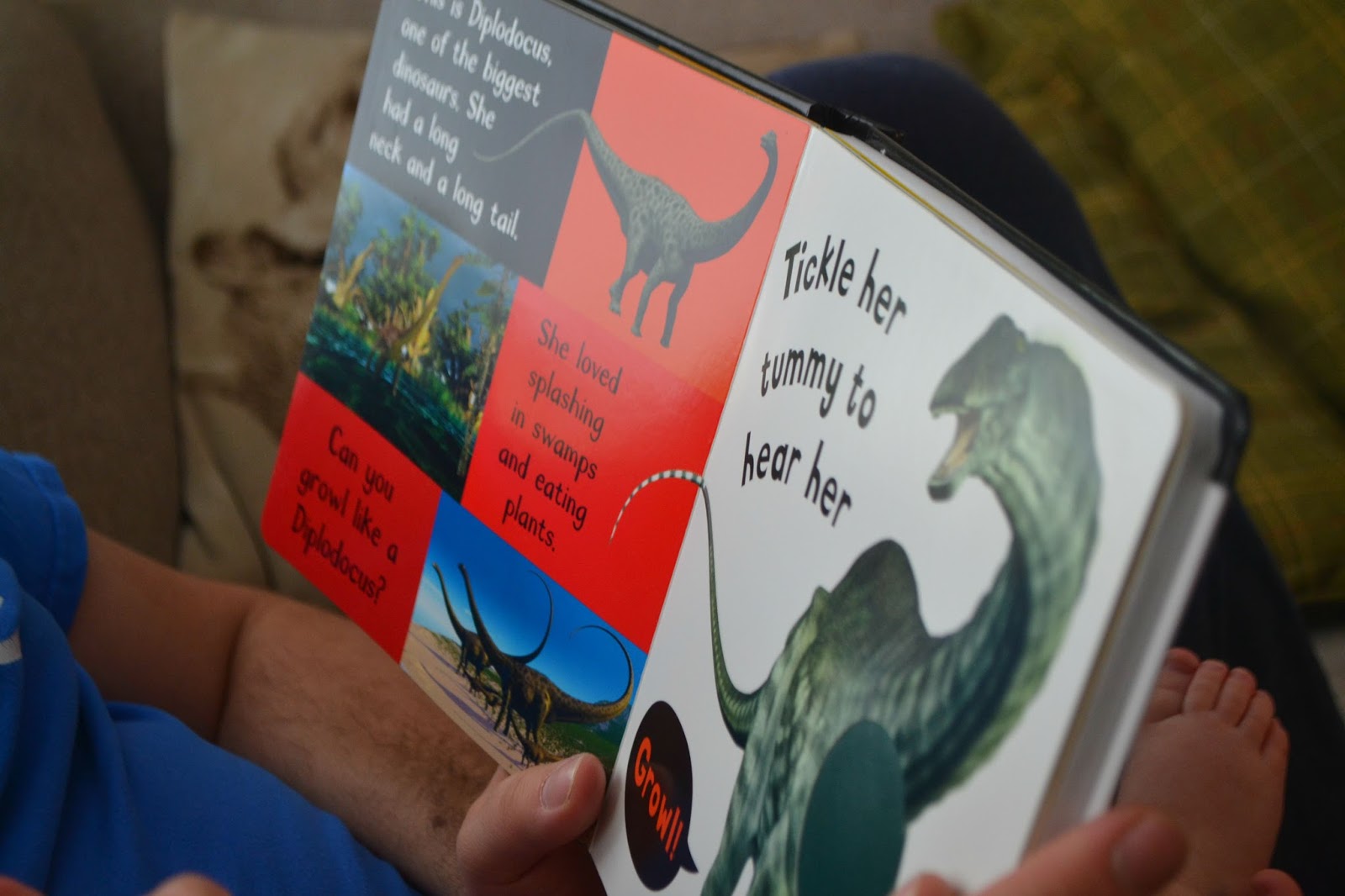 There are lots of facts about dinosaurs and there are tactile patches across the book which the little man loves to touch. He loves to read Noisy Dinosaurs with his Daddy and can easily copy the dinosaurs roaring noises.