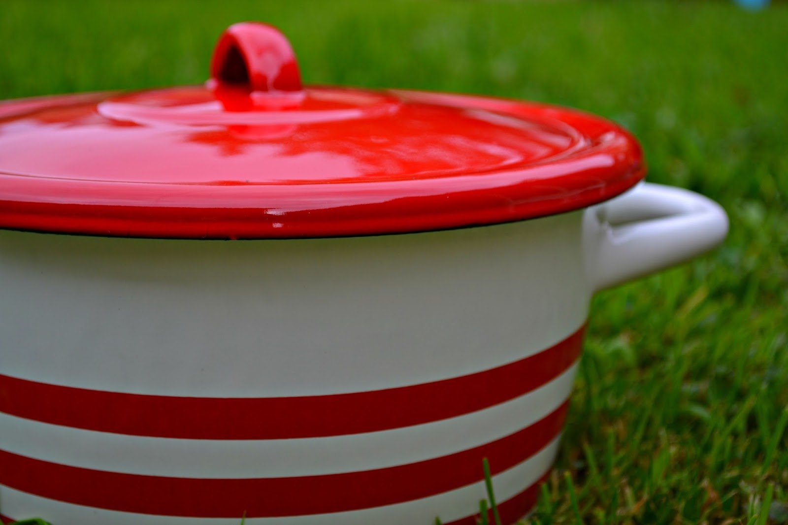I was kindly sent the 21cm Casserole Dish from the new range to try out in my own kitchen. The dish is available in both blue and red striped and looks like something straight from the 1950’s. I opted for the red to match my hideously modern red kitchen and I love it.