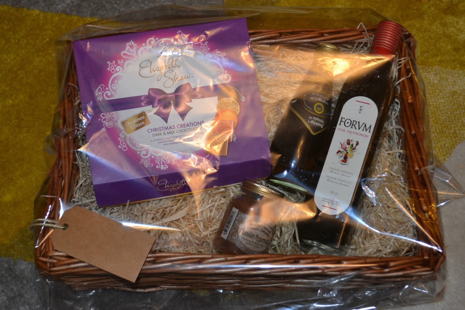 Their hamper kit include a very good sized willow basket which is perfect for filling with goodies. There’s also wood wool to fill the bottom of your hamper, an ivory bow, a gift tag and a heat shrink bag to cover your hamper.
